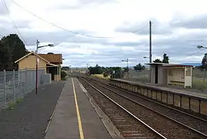 In 1882, a second platform was provided, but duplication of the track in both directions was not completed for a few more years. A goods shed was erected in 1888, while the current station building on Platform 2 dates to 1900.[2] The last siding was abolished in 1989.[3]