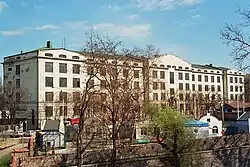 When Belgrade was divided into six quarters in 1860, Dorćol was one of them.[26] By the census of 1883 it had a population of 5,728.[27] Urban regulation of Dorćol began in the 1870s when the Association for the Improvement of the Danube Area was founded. They instigated cutting through of the streets, their paving with cobblestone and embankment works on the Danube's bank. In this period the industrialization of Dorćol also began as numerous factories and workshops started to open. Among others, this included "Šonda", the first chocolate factory in Serbia.[16]