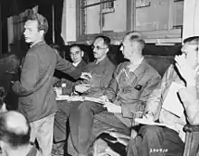 The prosecution consisted of Chief Prosecutor William Berman, Captain William F. McGarry, Captain John J. Ryan, Lieutenant William F. Jones, and investigators Jacob F. Kinder and William J. Aalmans.[15] Aalmans, a Dutch citizen serving with the U.S. Army, served as a translator during the liberation of the central camp complex. He also heard the testimony of the accused as a member of the investigative team. Aalmans produced a booklet entitled the "Dora"-Nordhausen Labor-Concentration Camps.[16][17]