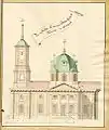 A new church was designed by Paul Spekle which was built between 1776 and 1782. It was consecrated in 1783. The church building was built in a cruciform plan however in 1840 the church was given an octagonal base and a large domed roof and four smaller corner towers adjacent to the centre of the arches. All the details of the building are characteristic of the early style of Russian Baroque. The church became a cathedral on 10 January 2009 and serves as the seat of the Orthodox Bishop of Tartu. [2]