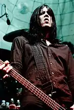 Doro signed a worldwide contract with the major record label WEA (now Warner Music Group) at the end of 1995 and started writing new material with Jürgen Engler and Chris Lietz of the German industrial metal and EBM band Die Krupps, who she had met while working on remixes of songs from Machine II Machine.[45] Doro also worked on other songs with Jimmy Harry and Fred Maher in the US.[48] The resulting album, titled Love Me in Black, took three years to be completed and features a massive use of electronics and drum machines, along with a heavier sound than its predecessors.[49] WEA judged the album unsuitable for the US market and published it only in Germany.[15] American guitarist Mario Parrillo (ex-Detente and Fear of God[50]) joined Taylor, Douglas and the returning Johnny Dee in Doro's band for the following tour,[51] which included another participation at the Wacken Open Air festival.[52]