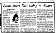 On April 11, 1955, Dandridge became the first black performer to open at the Empire Room inside New York's Waldorf-Astoria hotel.[22] Her success as a headliner led to the hotel booking other black performers such as the Count Basie Orchestra with vocalist Joe Williams, Pearl Bailey, and Lena Horne.[23]