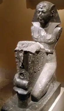 Both ancient and modern Egyptians commonly believed in spiritual possession and practised techniques for freeing the victim. Examples survive from ancient times showing how a statue of a god, propitiated with offerings, brought the release of a possessed person. In modern times the person who presides over such a ritual is called a shaykh and, similar to ancient practices, offerings are made to the spirit which has taken up residence in the person.[55] An alternative way is a ceremony called the butadjiyya, in which words are recited from the Quran with the patient immersed in the smoke of incense. A Christian method involves a pilgrimage to a Coptic Church at Mit Damsis. After ten days without washing it is hoped that St. George will appear and pierce the patient's foot from which the demon will depart.[56]