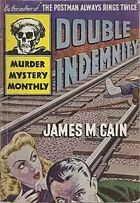 Double Indemnity is a 1943 crime novel by American journalist-turned-novelist James M. Cain. It was first published in serial form in Liberty magazine in 1936 and later republished as one of "three long short tales" in the collection Three of a Kind.[1] The novel later served as the basis for the film of the same name in 1944, adapted for the screen by the novelist Raymond Chandler and directed by Billy Wilder.