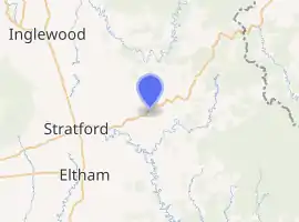Douglas is a lowly populated locality[1] and a rural centre in east Taranaki, surrounded by dairy, sheep and beef pastoral farming. It is situated 18 km east of Stratford at the intersection of East Road, Ohura Road, Douglas Road South and Bredow Road. East Road and Ohura Road meet to form State Highway 43, linking Stratford to the King Country town of Taumarunui. The Stratford–Okahukura Line, a secondary railway line, runs through Douglas where it veers north-east and away from the state highway for approximately 20 km.
