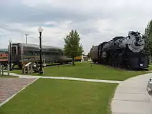 The former Fremont, Elkhorn and Missouri Valley Railroad Passenger Depot in Douglas is included on the National Register of Historic Places.[15] The Douglas Chamber of Commerce, part of the Douglas Railroad Interpretive Center is located in the depot. The free of charge exhibition outside contains eight railroad vehicles, one steam locomotive with tender and seven cars.[16]