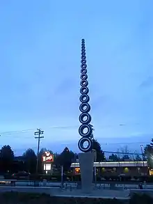 In October 2012, the 60-foot tall Infinite Tires was erected as part of Vancouver's public art program to accompany the opening of a Canadian Tire store. The construct was linked to the concept of Romanian artist Constantin Brâncuși's Infinite Column.[73]