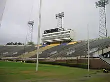 The next expansion began in December 2009. The expansion included removing the scoreboard located in the east end zone. 7,000 seats were built in its place. The seats connect the north and south sides in a horseshoe pattern. Those seats increased the capacity to 50,000. Restroom and concession stands were built under the new section. Above the east end zone, a new scoreboard was built. The HD scoreboard is 88 feet (27 m) wide and a little over 28 feet (8.5 m) tall. The LED portion is 84 feet (26 m) wide.[4] This makes the new scoreboard the 22nd largest scoreboard in NCAA Football Bowl Subdivision. On the north and south sides of the stadium, 10,200 chair-back seats were installed. Lastly, another scoreboard was built on the west end zone in front of the Murphy Center.[4] The total cost of the expansion was $20 million.[7][8]