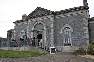 The station building was moved from across the street to its present location in the 1990s. Its previous role was that of the Gas Manager's House. The ground floor hosts the ticket office, shop, model railway room and toilets, the latter two of which are accessed from the platform. The first floor is home to a museum of BCDR railwayana. Downpatrick Station currently only has one operational platform, with a second, slightly shorter one, to be reinstated in the near future. At the north end of the platform, a signal cabin is under construction. At the south end is a water tower.