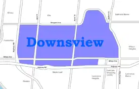 Downsview is a neighbourhood in the north end of Toronto, Ontario, Canada, located in the district of North York. The area takes its name from the Downs View farm established around 1842 near the present-day intersection of Keele Street and Wilson Avenue.[2] It now extends beyond the intersection of Sheppard Avenue and Dufferin Street (the latter which is bypassed by Allen Road in the vicinity of the intersection), though it is popularly seen as including the areas to the north right up to the Toronto city limit at Steeles Avenue. The area includes several large post-World War II subdivisions. Within the area is Downsview Airport, the former site of Canadian Forces Base Downsview, which has since been largely converted following the end of the Cold War into an urban park known as Downsview Park. The airport is still used as a manufacturing and testing facility for Bombardier Aerospace.