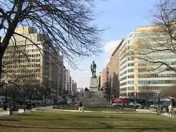 Downtown is a neighborhood of Washington, D.C., as well as a colloquial name for the central business district in the northwest quadrant of the city. It is the fourth largest central business district in the United States. Historically, the Downtown has been defined as an area east of 16th Street NW, north of the National Mall and US Capitol complex, and south of Massachusetts Avenue, including the Penn Quarter. However, the city says that most residents, workers, and visitors think of Downtown in a broader sense—including areas as far north as Dupont Circle, the Golden Triangle, as far west as Foggy Bottom, and as far east as Capitol Hill.[2] A small portion of this area is known as the Downtown Historic District and was listed on the NRHP in 2001.[1]