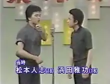 Downtown (ダウンタウン, Dauntaun) is a Japanese comedy duo from Amagasaki, Hyōgo consisting of Hitoshi Matsumoto and Masatoshi Hamada. Formed in 1982, they are one of the most influential and prolific comedy duos in Japan today.[1] They are best known for their stand-up acts, hosting numerous Japanese variety shows (such as Downtown no Gaki no Tsukai ya Arahende!!, Hey! Hey! Hey! Music Champ and Wednesday's Downtown) and their sarcastic, short-tempered stage personas.