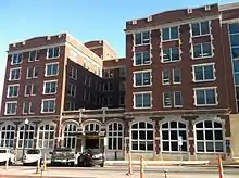 Downtown Columbia is the central business, government, and social core of Columbia, Missouri and the Columbia Metropolitan Area. Three colleges — the University of Missouri, Stephens College, and Columbia College — all border the area. Downtown Columbia is an area of approximately one square mile surrounded by the University of Missouri on the south, Stephens College to the east, and Columbia College on the north. The area serves as Columbia's financial and business district and is the topic of a large initiative to draw tourism, which includes plans to capitalize on the area's historic architecture and Bohemian characteristics.[2] The downtown skyline is relatively low and is dominated by the 10-story Tiger Hotel, built in 1928, and the 15-story Paquin Tower.[3][4]