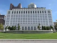 Now known as the Thomas J. Moyer Ohio Judicial Center, the Ohio State Office Building was built in 1933 and has housed several departments of government throughout the years. Since 2004 it has been the location of the Ohio Supreme Court. The building is located on Front Street and features several murals, bronze plaques, and statues which depict the history of Ohio.[34]
