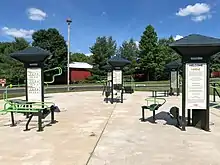 Doylestown Central park has several fitness stations installed around the park along the walking trail. Weather permitting, outdoor boot camp classes are hosted on Monday and Wednesday evenings from 6:00-7:00pm.[11]
