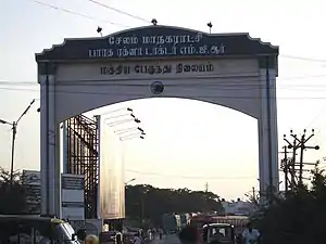 Being a major transit point in the central region of the state and spreading over an area of 5.5 acres (2.2 ha) this terminus is managed by Department of Transport (Tamil Nadu), experiences a heavy traffic of operating about 1,100 buses operating and crossing through the bus terminus. It is located in Center of the Salem City.[2] It has been renamed by Government of Tamil Nadu as Bharat Ratna Dr. M.G.R. Central Bus Stand to honor the AIADMK founder and the former Chief Minister of Tamil Nadu M. G. Ramachandran.