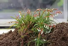Dracophyllum secundum is a prostrate to semi-erect shrub found in eastern Australia. It occurs from as far south as Pigeon House Mountain north to Kendall, New South Wales on the mid north coast. A common plant in the Blue Mountains near Sydney. Found as far west as Blackheath.[1] It is often noticed by bushwalkers for the attractive flowers and arching foliage.