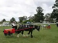 The major agricultural shows in Australia hold led (conformation), trade and turnout classes for draft horses. At field days draft horses are also shown in long reining, ridden, log snigging, ploughing, pulling, novelty events, agricultural and other implements events, too.[1]