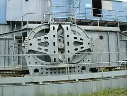 In 1907, Monighan's Machine Works of Chicago became interested in manufacturing draglines when local contractor John W. Page placed an order for hoisting machinery to install one. In 1908, Monighan changed its name to the Monighan Machine Company. In 1913, a Monighan engineer named Oscar Martinson invented the first walking mechanism for a dragline.[2][3][4] The device, known as the Martinson Tractor, was installed on a Monighan dragline, creating the first walking dragline. This gave Monighan a significant advantage over other draglines and the company prospered. The cam mechanism was further improved in 1925 by eliminating the drag chains for the shoes and changing to a cam wheel running in an oval track. This gave the shoe a proper elliptical motion.[5][6] The first dragline using the new mechanism was the 3-W available in 1926. So popular were these machines that the name Monighan became a generic term for dragline. In the early 1930s, Bucyrus-Erie began purchasing shares of Monighan stock with Monighan's approval. Bucyrus purchased a controlling interest and the joint company became known as Bucyrus-Monighan until the formal merger in 1946. The first walking dragline excavator in the United Kingdom was used at the Wellingborough iron quarry in 1940.[7]