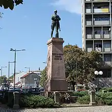 His 1925 "Defense" sculpture was erected in the lobby of the National Assembly of the Republic of Serbia and represents the personalities of the three constituent peoples, then part of the Kingdom of Yugoslavia.[7][8] In 1927, the Monument to the Fallen for the Fatherland 1912-1918 is also the work of Arambašić, erected in Leskovac.[9]