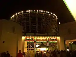 The Dragon Coaster is a wooden roller coaster at Playland amusement park in Rye, New York. Opened in 1929, it was designed and built by amusement ride creator Frederick Church,[1] the co-inventor of the Racing Derby, another early 20th century amusement park ride. The Dragon Coaster has approximately 3,400 feet of track and is, at its highest, approximately 80 feet tall. There is a tunnel along its span, a common feature of wooden roller coasters from the 1920s, that resembles the body and open mouth of a dragon. It was featured in the film Fatal Attraction,[2] Mariah Carey's music video "Fantasy", and Big, starring Tom Hanks. The Dragon Coaster is still in operation.