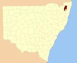 Drake County was named in honour of Sir Francis Drake (1540–1596).[1] It is located to the north of parts of the Clarence River, Nymboida River and Mann River. It includes the Washpool National Park.