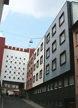 The Drei-Farben-Haus (three-colour house) is Stuttgart's largest and oldest brothel. It is located in Am Bebenhäuser Hof[3][1] in the lively downtown district between the end of Königstraße and the market square, which contains Stuttgart City Hall.
