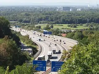 The Dreieck Karlsruhe (German: Autobahndreieck Karlsruhe, abbreviated AD Karlsruhe) is a half-stack interchange in the German state of Baden-Württemberg.