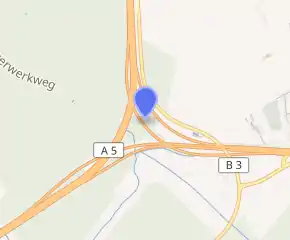 Near the motorway interchange the A 5 as well as the A 8 have a 1x3 layout. All connections in the interchange have two lanes.