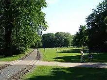 The Dresden park railway (German: Dresdner Parkeisenbahn) is a 381 mm (15 in) minimum gauge railway in Dresden, Germany. The line opened in 1950 and was previously known as the Kindereisenbahn and the Pioniereisenbahn. As these names suggest, the line is largely operated by children, and is a survivor of the many children's railways that were built in the former Eastern Bloc countries. The railway operates within the Großer Garten, a large city centre park.