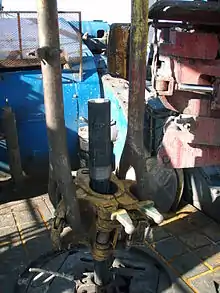 Drill floor with the drill pipe