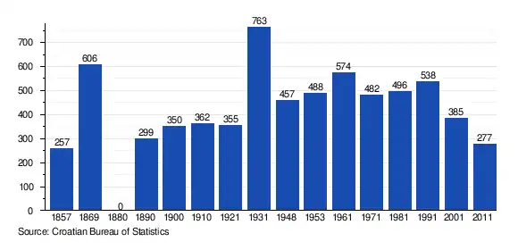 According to the 1991 census,[2] 77.88% of the village population were ethnic Serbs (419/538), 7.99% were ethnic Croats (43/538), 6.87% were Yugoslavs (37/538), while 7.25% were of other ethnic origin (39/538).