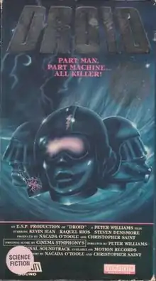 Droid is a 1988 direct to video science fiction film. Its origins are intentionally obscured on its packaging, crediting direction of the film to "British director Peter Williams" and the starring roles of Taylor to "Kevin Jean" and his ex-wife Nicola to "Raquel Rios" on the front cover and Rebecca Lynn on the back cover. The end credits reveal that these roles are played by Greg Derek and Krista Lane. The film is, in fact, an edited version of a hardcore pornographic film called Cabaret Sin (originally released July 1, 1987) marketed to a science fiction audience, and its director is actually Philip O'Toole, from a screenplay with Nacada O'Toole and Christopher Saint Booth|Christopher Saint. The film was released on VHS by Even Steven Productions and bore a stamped decal warning of sexual situations, nudity, violence, and adult language, although the film has no MPAA rating. The storyline is an imitation of Blade Runner, while one character is blatantly modeled on Anthony Daniels as C-3PO. The executive producer is Kirdy Stevens.