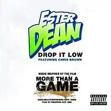 "Drop It Low" is the debut single by American singer and songwriter Ester Dean. The official version features vocals from R&B singer Chris Brown.[2] This was also released as the second single from the soundtrack for the film More than a Game (2009). The original version of the song did not feature Chris Brown, and maintained the same lyrics on the second verse but coming from a man's perspective. The official remix features Lil Wayne, Trey Songz and Diddy. The song's producer, Polow da Don later stated that the song was originally meant for Ciara, but when the singer passed on it, it was eventually given to Ester Dean.