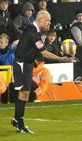 In 1888, a new law was added to the rules of association football allowing the referee to restart the game after a temporary suspension of play by "throwing up the ball at the spot where play was suspended". The ball could not be played until it had touched the ground.[6] In 1905, the referee was instructed to "throw the ball down" rather than up,[7] and in 1914, to "drop the ball".[8]