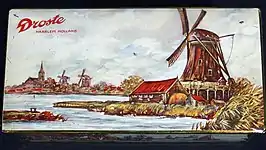 Droste was founded by Gerardus Johannes Droste in 1863 in the city of Haarlem.[1] The company started as a confectionery business selling various types of candy, including the Droste chocolate pastilles that are still being sold today. Because of the growing reputation, the firm G.J. Droste opened its first factory in 1890. The entire chocolate making process took place in the same building as where the retail store was located. In 1891, the factory was relocated to the Spaarne river due to lack of room in the old building. This new location was favourable because the raw materials could now be delivered by boat. Likewise, the shipping of finished products was done on water, improving the distribution process.