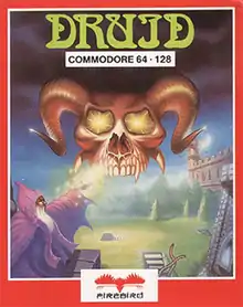 Druid is a hack and slash dungeon crawl developed by Electralyte Software and published by Firebird in 1986 for the Atari 8-bit family and Commodore 64. It was also ported to Amstrad CPC, ZX Spectrum, and by Nippon Dexter in 1988 for the MSX, although the MSX port was released in Japan only. Another Japanese port of Druid entitled Druid: Kyōfu no Tobira (ドルイド 恐怖の扉) was made for the Famicom Disk System by Jaleco in 1988.[2] The game was followed by Druid II: Enlightenment and Warlock: The Avenger.
