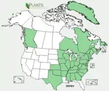 Dryopteris marginalis has a wide distribution in the northeastern USA. It was found for the first time in Minnesota in 1981, and likely was part of the native flora for a long time but overlooked because of its rarity and its close resemblance to related species.[6] It is listed as a threatened species in Minnesota, not so much because the species is currently threatened, but because there is only one population found on an east-facing bluff composed of sandstone that is capped with limestone.[6] In other parts of its range it is found in woods, on talus-slopes, in rocky areas and walls, on wooded slopes and ravines, and at the edges of woods, streams and roads.[5]