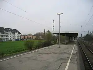 Duisburg-Rahm station is a station in the suburb of Rahm of the city of Duisburg in the German state of North Rhine-Westphalia. It is on the Cologne–Duisburg railway and it is classified by Deutsche Bahn as a category 5 station.[1] The station was opened on 30 September 1973.[4]