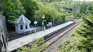 Duncraig railway station is a remote railway station by the shore of Loch Carron on the Kyle of Lochalsh Line, serving Duncraig Castle, a mansion near Plockton, in the Highland council area of northern Scotland. It was originally a private station, and features a small, unique octagonal waiting room. The station is unstaffed and is a request stop.