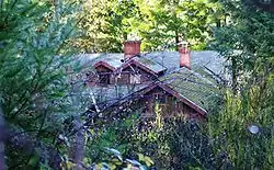 Located in the foothills of the Northern Oregon Coast Range, the farm is on Dundee Road northwest of the city of Gaston near Henry Hagg Lake in the western part of the county. All three of the buildings on the farm were designed by E. E. Green in a rustic style.[2][9] The 1+1⁄2-story structures were all built around 1921 and featuring primarily round logs for the exterior.[2][9] The buildings also used brick on the exterior.[2] This creates a log cabin look for the symmetrical U shaped main building.[10] The interior leaves the round logs exposed,[11] with some wood paneling and a brick fireplace.[12]