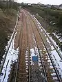 Looking towards Lugton from the overbridge. Preparatory work for the track doubling is in evidence.