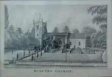 The Church of England parish church of St Mary Magdalene existed in the 12th century, from which period the font and one Early English Gothic lancet window in the chancel survive.[3] The north aisle was added late in the 13th or early in the 14th century.[3] The tower, south porch and many of the present windows were added late in the 14th or early in the 15th century.[3] The tower collapsed in 1647, damaging the south side of the church.[3] It was rebuilt in 1664–65.[3] In 1861–62 Sir George Gilbert Scott completely rebuilt the chancel and north aisle and partly rebuilt the south wall of the nave.[3]
