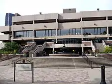 Duquesne University has more than tripled in size from its early 12.5-acre (50,590 m2) site on Boyd's Hill to its present 49-acre (198,300 m2) main campus in Pittsburgh's Uptown neighborhood.[21] Of the 31 buildings that make up the Bluff campus, several are recent constructions or renovations, including a health sciences facility (Rangos Hall), two recording studios, two parking garages, a multipurpose recreation center (Power Center), and a theater-classroom complex (Bayer Hall).