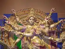Durganagar is named after the goddess Durga. Almost 3–4 Durga Pujas pandels are set up during the main festive season. The two main ancient Pujas at Durganagar are "Durganagar adibasi brinda", the first is set up at the main (Durganagar sporting club) playground near Durganagar X Roads (Chou Rasta) it is organized by Durganagar Sporting Club and the second is Uttar Durganagar Odibasi brinda, Kolkata:-65 Club set up at the (Saraj Sisu Uddan) near Saha Katgola is mainly organised by the members of Bandhu Milon sangha.