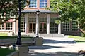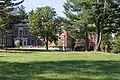 Benjamin Thompson, a descendant of an early settler, bequeathed his assets and family estate, Warner Farm, to the state for the establishment of an agricultural college.[20][21] Founded in 1866 in Hanover, the New Hampshire College of Agriculture and the Mechanic Arts moved to Durham in 1893 and became the University of New Hampshire in 1923. Thompson Hall, built in 1892 with an iconic clock tower, is named in his honor. Designed in the Romanesque Revival style by the Concord architectural firm of Dow & Randlett, it was listed on the National Register of Historic Places in 1996.[22]