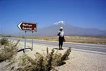 According to local reports, heavy rains combined with three earthquakes exposed the formation from the surrounding mud on May 19, 1948. It was discovered by a Kurdish shepherd named Reshit Sarihan.[7][8] It was subsequently identified by Turkish Army Captain Ilhan Durupınar (Turkish: İlhan Durupınar)—for whom it was subsequently named—in a Turkish Air Force aerial photo while on a mapping mission for NATO in October 1959. Durupınar informed the Turkish government of his discovery and a group from the Archeological Research Foundation which included George Vandeman, Ilhan Durupınar, and Arthur Brandenberger, professor of photogrammetry, surveyed the site in September 1960. After two days of digging and dynamiting inside the "boat-shaped" formation, the expedition members found only soil and rocks. Their official news release concluded that "there were no visible archaeological remains" and that this formation "was a freak of nature and not man-made".[9]