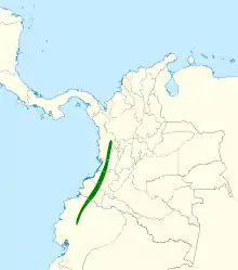 It is found in Colombia and Ecuador. Its natural habitat is subtropical or tropical moist montane forests.
