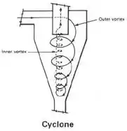 Single-cyclone separators create a dual vortex to separate coarse from fine dust. The main vortex spirals downward and carries most of the coarser dust particles. The inner vortex, created near the bottom of the cyclone, spirals upward and carries finer dust particles.