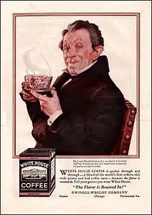 Dwinell-Wright Company and their White House brands of coffee and tea were the last and best known incorporation of one of the pioneers of the coffee roasting business in Boston, Massachusetts. James F. Dwinell started roasting coffee as Dwinell & Co. in 1845, and in 1879 he joined forces with Martin Hayward and George C. Wright to become Dwinell, Hayward and Co., which evolved to Dwinell-Wright Company in 1899 after the death of Mr. Hayward.[1]